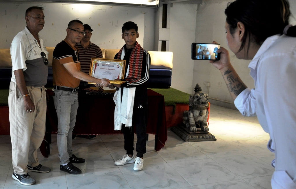 सो सफलतालाई प्रशंसा गर्दै सोमबार भक्तपुरमा ग्लोबल नेप्लिज कराते अर्गनाइजेसन र भादगाउँ स्पोर्टस एण्ड लाउन्जले दुबै खेलाडीलाई नगदसहित सम्मान गरेको थियो भने प्रशिक्षक सन्तोष चाम्लिङसमेतलाई पनि नगदसहित सम्मान गरेको थियो।