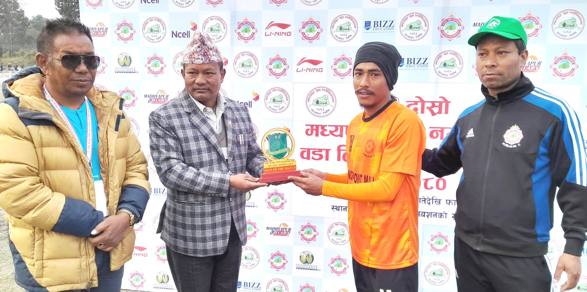 तर खेलको ९० औं मिनेटमा वडा नं. २ का उत्सव प्रधानले गोल गर्दै खेल बराबरीमा ल्याए । दोस्रो हापमा मैदान प्रवेश गरेका उत्सवले खेलको ९० औं मिनेटमा प्राप्त फ्रिकिकमा उत्कृष्ट गोल गर्दै खेललाई बराबरीमा ल्याउँदैं टोलीलाई एक अंक दिलाएका थिए ।