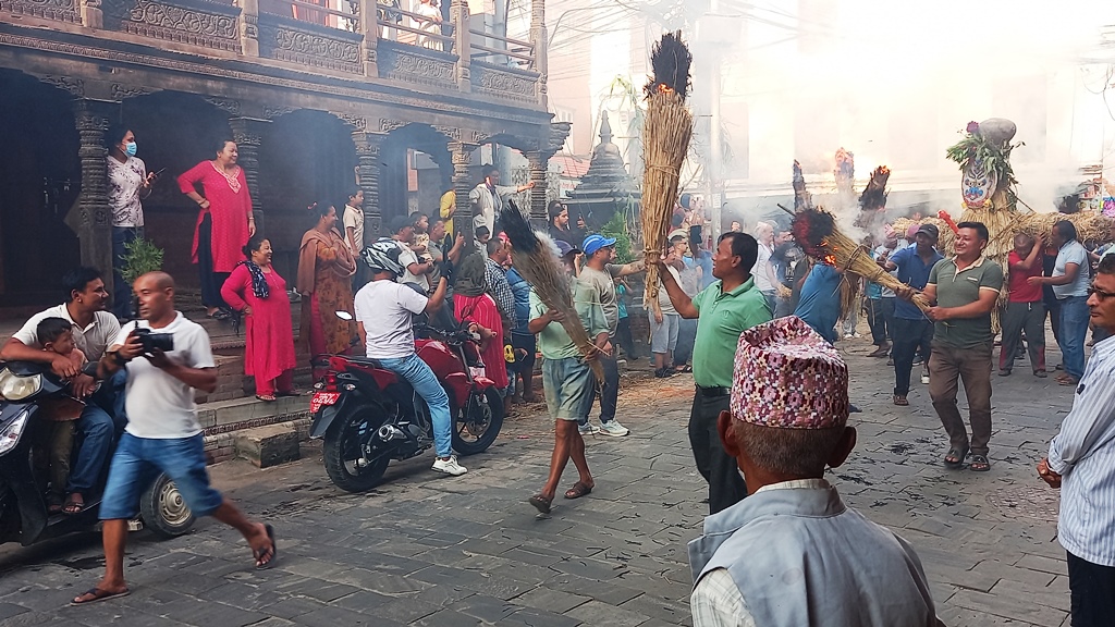 झक्तपुर लगायत बिभिन्न नेवाः समुदाय भएको शहरमा आज गाथामग चर्हे हर्ष उल्लासका साथ मनाईयो । प्रत्येक बर्षको साउन कृष्ण चतुदर्शीका दिन यो पर्व नेवाः समुदायमा भब्यताका साथ मनाउने गरिन्छ । यो पर्व कहिले देखि मनाउने गरिएको हो त्यसबारे तथ्य प्रमाण नभेटिएता पनि समाजमा बच्चा मारेर खाने राक्षेसको अन्त्य गरि सोहि राक्षेसलाई दोवाटोमा लगि आजकै दिन साँझमा जलाउने गरिन्छ ।
